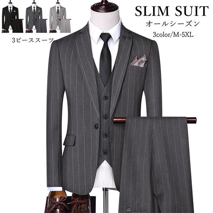 メンズスーツ 3ピース スリーピーススーツ ビジネススーツ メンズ ストライプ 秋 冬 男の子 大きいサイズ 結婚式 入学式 卒業式 二次会 パーティー カジュアル セットアップスーツ 高校生 成人式 成人の日 紳士 紳士服 オールシーズン 通勤 細身 スリムスーツ