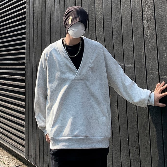 トレーナー メンズ スウェット Vネック トレーナー 裏起毛 あったかい ビッグシルエット 長袖 トップス ビッグサイズ 無地 スエット 大きいサイズ 重ね着 ゆったり 冬服 冬 秋服 秋冬 メンズファッション 送料無料