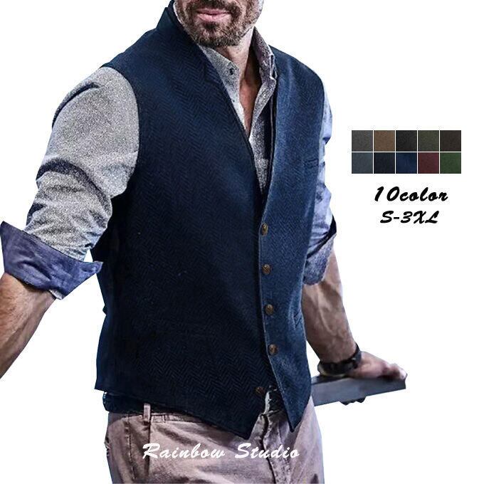 ベスト メンズ スーツ ジレ ツイード ウール ビジネス 暖かい スリム 大きいサイズ シングル 細身 結婚式ベスト フォーマル 紳士 卒業式 カジュアル 男性用 春 夏 秋 冬 おしゃれ シンプル デザイン オールドアメリカン アメカジ お兄系 メンズファッション プレゼント ギフト 全10色 XS-6L 送料無料 冬でも着れる大人のツイードベスト。高級感のある素材で上品さが薫る。 セットアップ可能です。