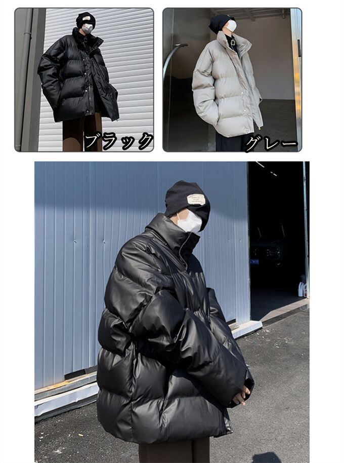 中綿コート 中綿ジャケット メンズ 撥水 PU革 ショート丈 厚手 アウター PU レザー ブルゾン 大人 暖かい 防寒 スタンドネック ハイネック 無地 ブラック 黒 モード系 中綿コート 大きいサイズ ゆったり 防寒 防風 暖かい カジュアル 送料無料