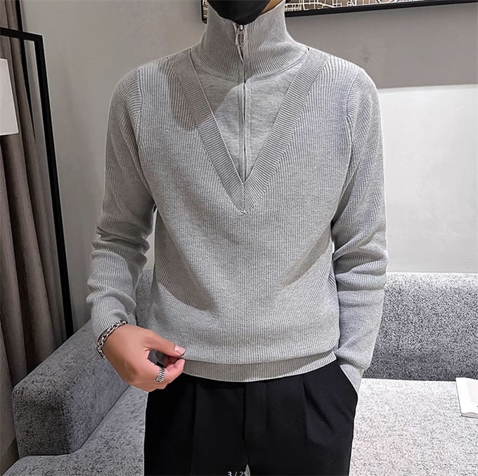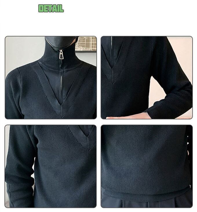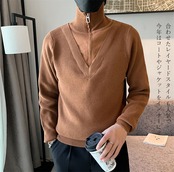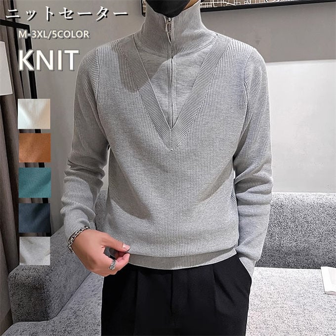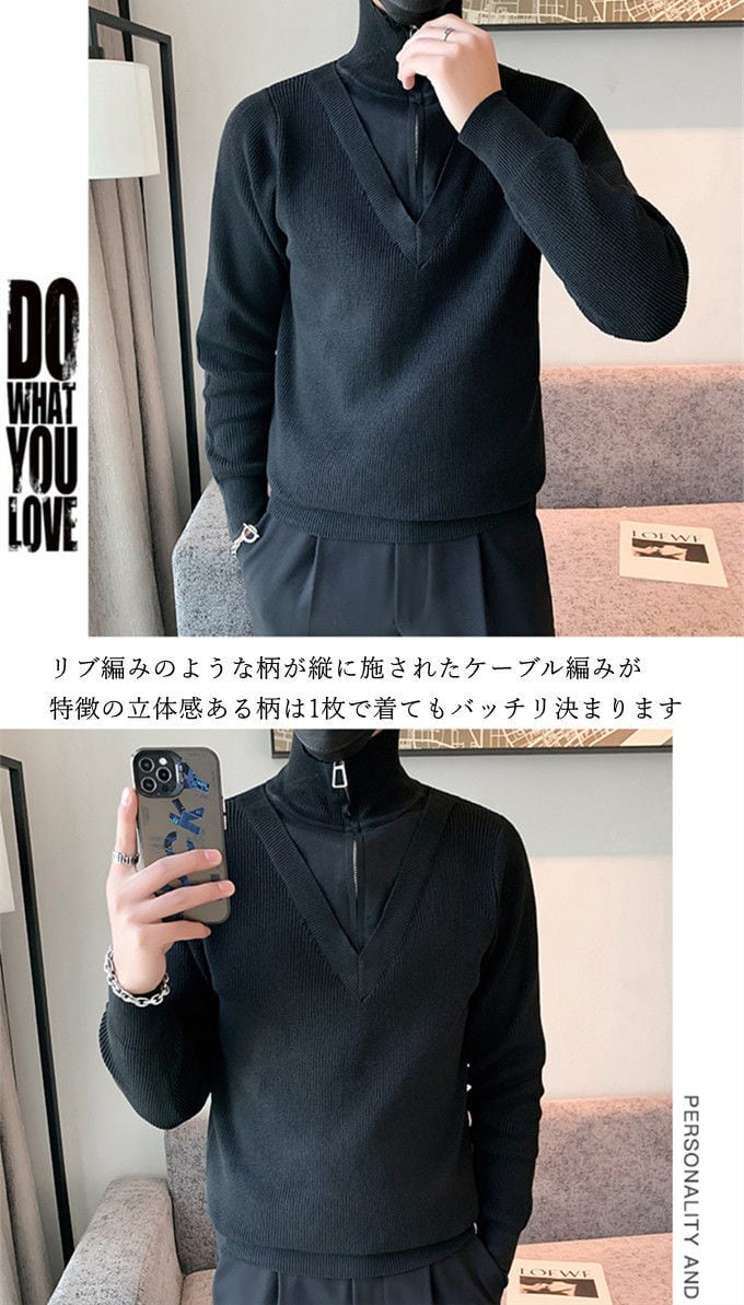 ニット メンズ セーター 長袖 おしゃれ 大人 レイヤード風 クルーネック ハイネック ニットソー リブ編み プルオーバー トップス ゆったり 暖かい 防寒 男 男性 プレゼント カジュアル シンプル 無地 白 黒 秋 冬 秋冬 20代 30代 40代 送料無料