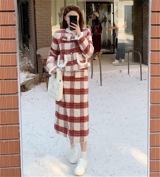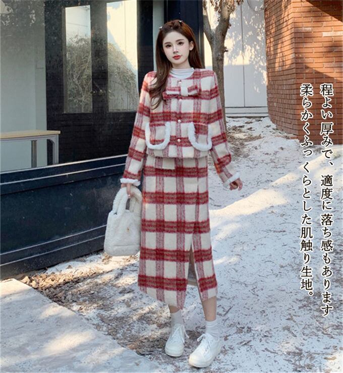 2点セットツイード レディース アウター 中綿コート 中綿入り スカート アウター ジャケット タイトスカート 膝上 ひざ下 ミモレ丈 秋冬 あたたかい 通勤 オフィス スーツ フェミニン きれいめ エレガント おしゃれ 大人上品 あったか 暖かい 秋冬 上下セット 送料無料