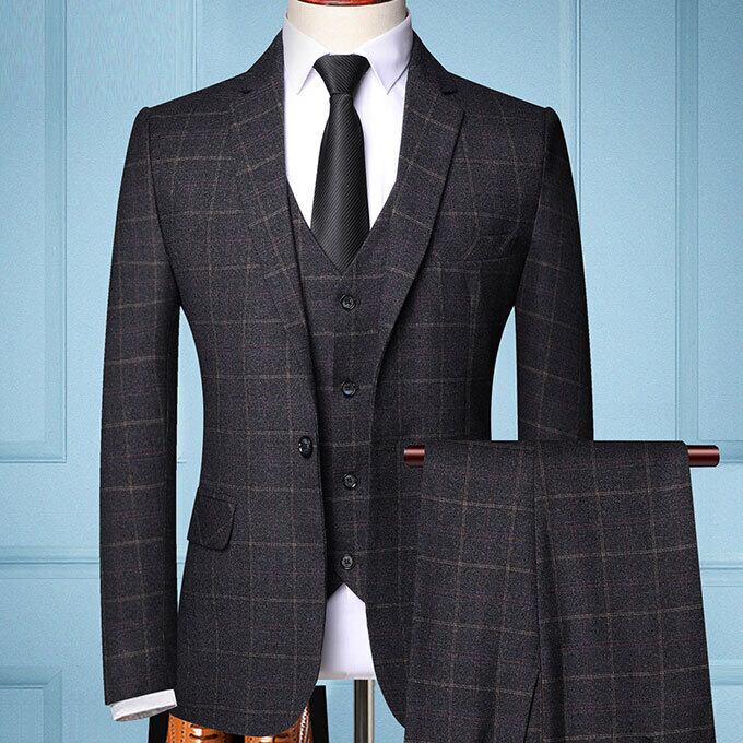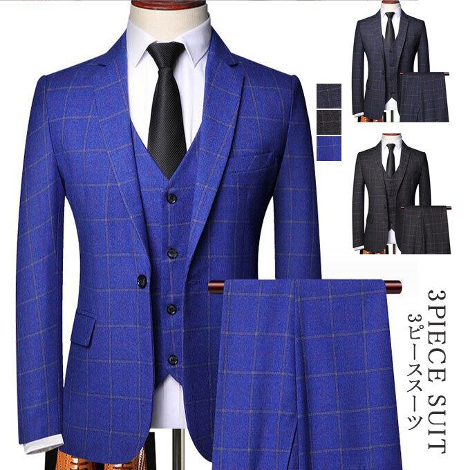 メンズスーツ 3ピース スリーピーススーツ ビジネススーツ 大きいサイズ メンズ チェック 秋 冬 オールシーズン 男の子 結婚式 入学式 卒業式 二次会 パーティー カジュアル セットアップスーツ 高校生 成人式 成人の日 紳士 紳士服 通勤 細身 スリムスーツ