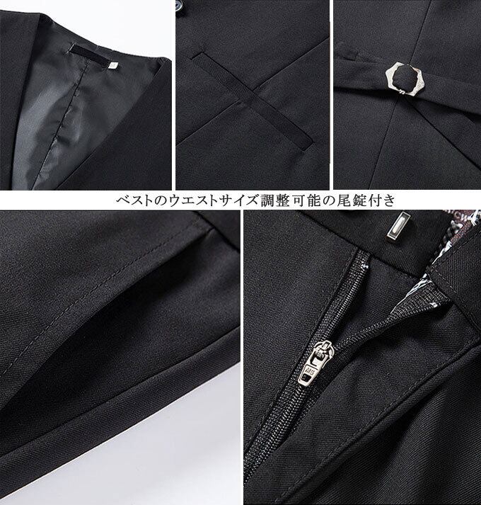 ・滑らかでソフトな肌触り質感、優れたコストパフォーマンスのスーツセットで、機能性を重視した素材で心地よく快適で、全体的に程よくシェイプしたシルエットのスリーピース スーツです。スタイリッシュスリムタイプで、爽やかおしゃれな感じでスマートに着こなせるなスーツセットです。ベーシックスペック設計で年齢層を選ばずご着用いただけます。