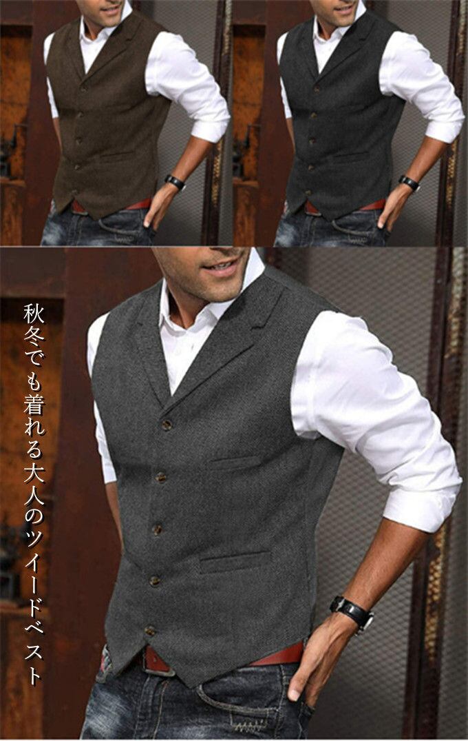 ベスト メンズ スーツ ジレ ツイード ウール 秋冬 ビジネス 暖かい スリム 大きいサイズ シングル 細身 ビジネス 結婚式ベスト フォーマル 卒業式 紳士 カジュアル 男性用 春 秋 冬 人気 おしゃれ シンプル オールドアメリカン アメカジ プレゼント ギフト 全13色 XS-6L 送料無料