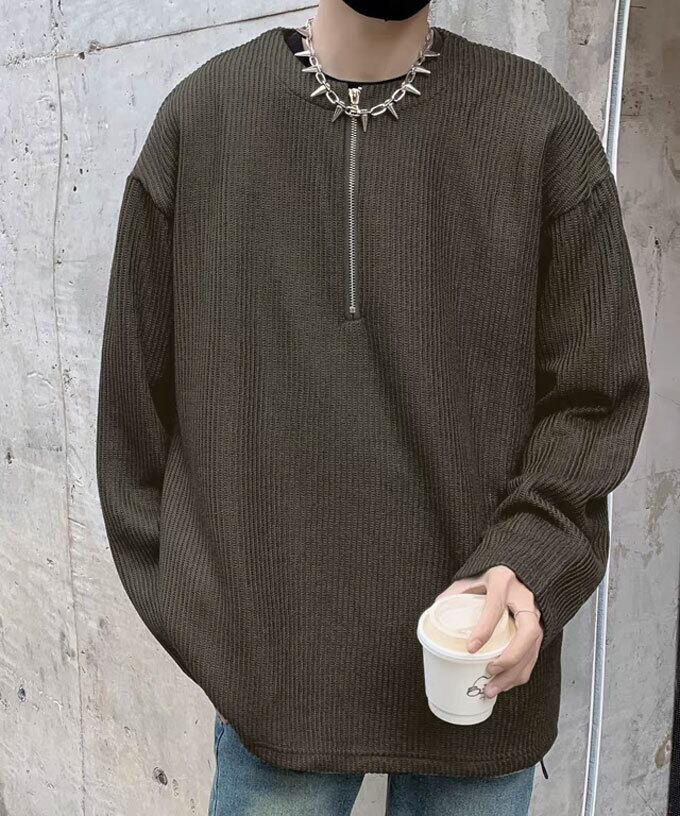 ニット メンズ 長袖 セーター ハーフジップ グルーネック ニットセーター 無地 春 秋 冬 ニットソー トップス ニットトレーナー メンズセーター ゆったり カジュアル 無地 オシャレ トップス 送料無料