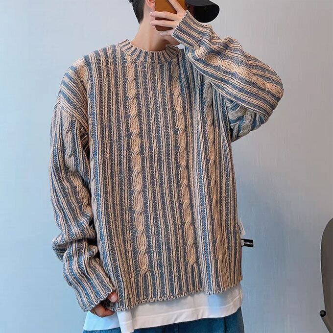 ニット メンズ セーター 長袖 ケーブル クルーネック ニットソー トップス ケーブルニット ゆったり 暖かい 防寒 男 男性 ルームウェア プレゼント カジュアル シンプル 秋 冬 秋冬 20代 30代 40代 おしゃれ 大人 送料無料