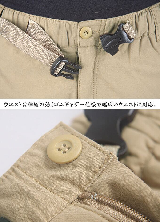 大きなカーゴポケットとフラップ付きのバックポケットは、日常シーンで便利かつ扱いやすいデザインです。