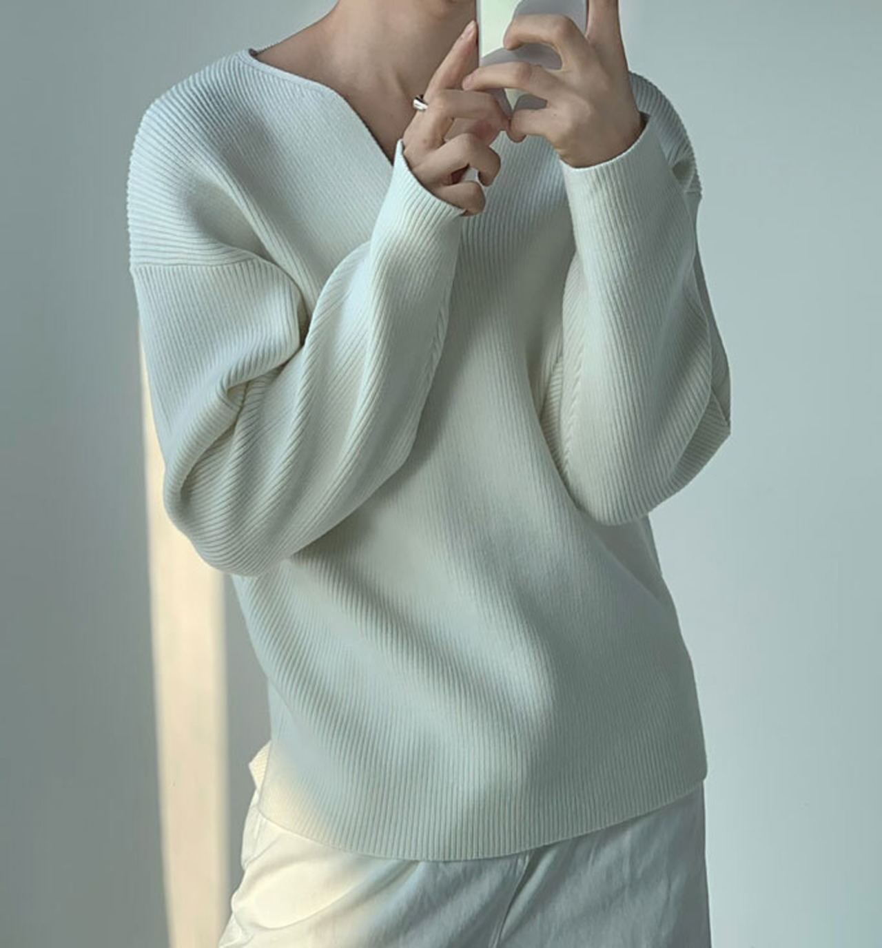 シルエットなのに清潔感のあるクリーンコーデを叶えるニットの登場です。