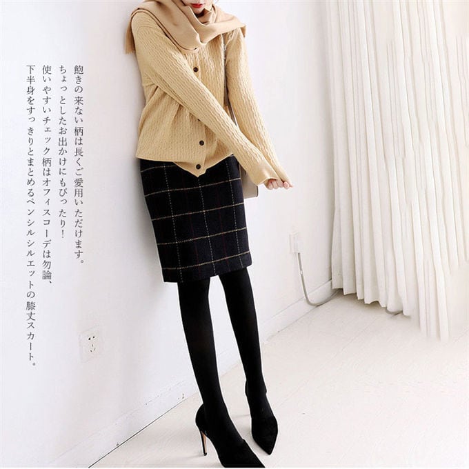 タイトスカート チェック柄 レディース ウール混 スカート ペンシルスカート ウールタッチ 膝上 通勤 オフィス おしゃれ カジュアル 大人 可愛い 上品 きれいめ 秋 冬 送料無料