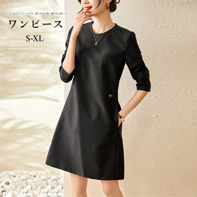 ワンピース レディース Aライン ゆったり 体型カバー 無地 長袖 20代 30代 40代 50代 秋 冬 春 夏 ストレッチ 黒 ブラック 大きいサイズ フレア キレイめ 上品 シンプル フォーマル 入学式 入園式 卒業式 卒園式 七五三 結婚式 膝丈 膝下 エレガント 上質