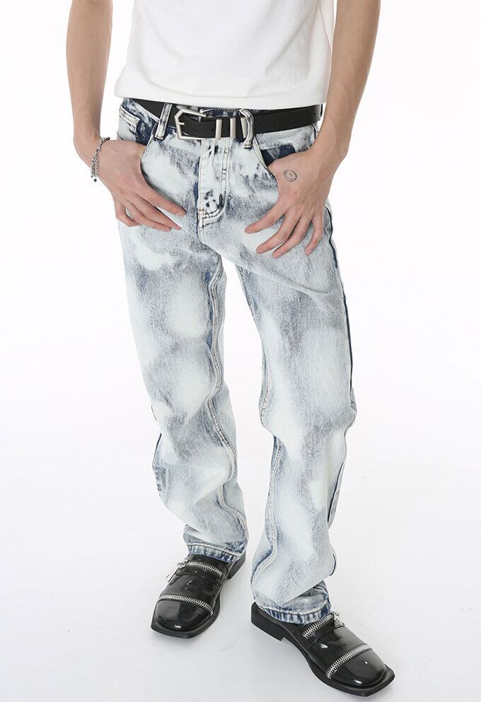 デニムパンツ ワイドパンツ メンズ ワイドデニム ゆったり ウォッシュ加工 ヴィンテージ ジーンズ ジーパン ズボン ぼかし柄 ゆるいパンツ オールシーズン 作業着 体型カバー 大きめ 大きい ダンス 韓国ファッション ストリート系 春 夏 秋 冬 送料無料