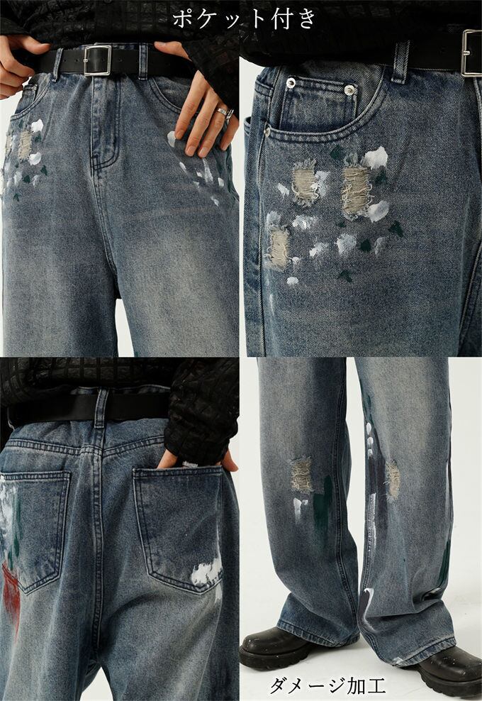 ワイドパンツ デニム メンズ モード系 ワイドデニムパンツ ダメージ ワイドデニム デニムパンツ ダメージパンツ ワイド ジーンズ ジーパン スパナポケット ボトムス 個性派 おしゃれ ユーズド加工 ストリート系 かっこいい ゆったり 太め レトロ ズボン デニムパンツ ワイドデニムパンツ ジーパン ヒップホップ ストリート系 ロングパンツ ファッション 送料無料