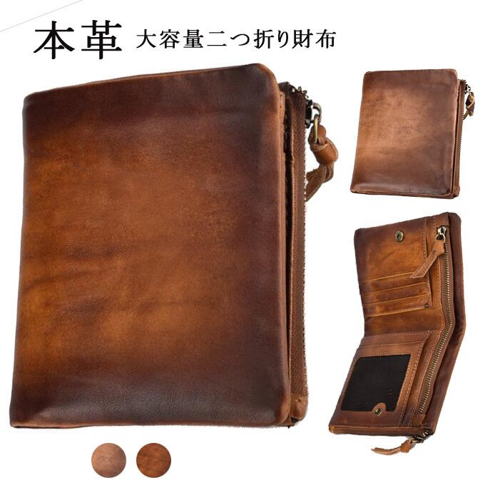 財布 メンズ 二つ折り 本革 人気 大容量 小銭入れ カード収納 ウォレットカードケース さいふ チャック付き レトロ風 軽量 カジュアル ビジネス 紳士用 オシャレ カッコいい 送料無料