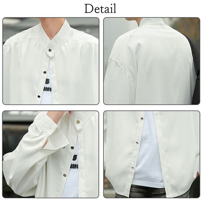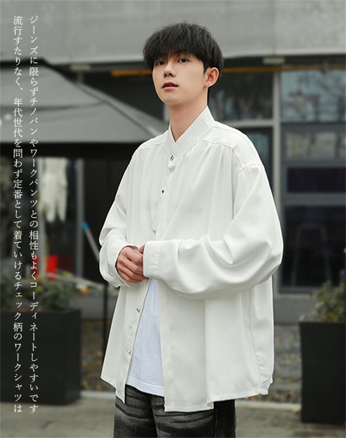 シャツ メンズ 開襟シャツ ゆったり 長袖シャツ スタンドカラー ビジネス オールシーズン カジュアル トップス ゆったり 大きいサイズ ホワイト ネイビー M L XL 2XL 3XL 男性 春 秋 送料無料