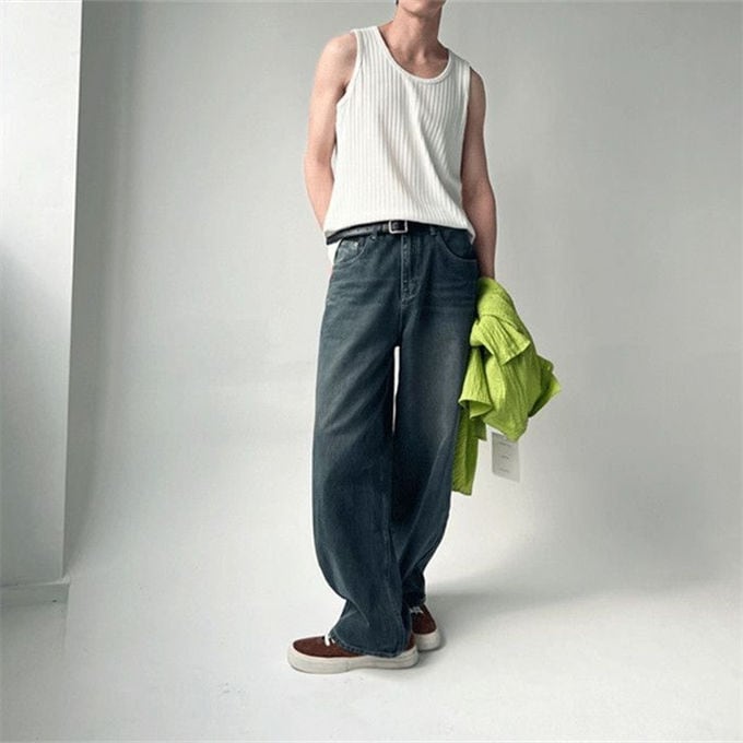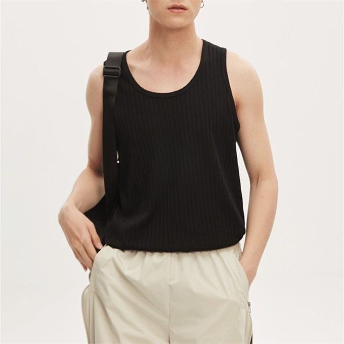 タンクトップ メンズ tシャツ ノースリーブ リブ編み インナー レイヤード 無地 TANK TOP トップス クルーネック オーバーサイズ ビッグシルエット 大きいサイズ 韓国ファッション トレーニングウェア ストレッチ トレーニング 筋トレ カジュアル 春夏 送料無料