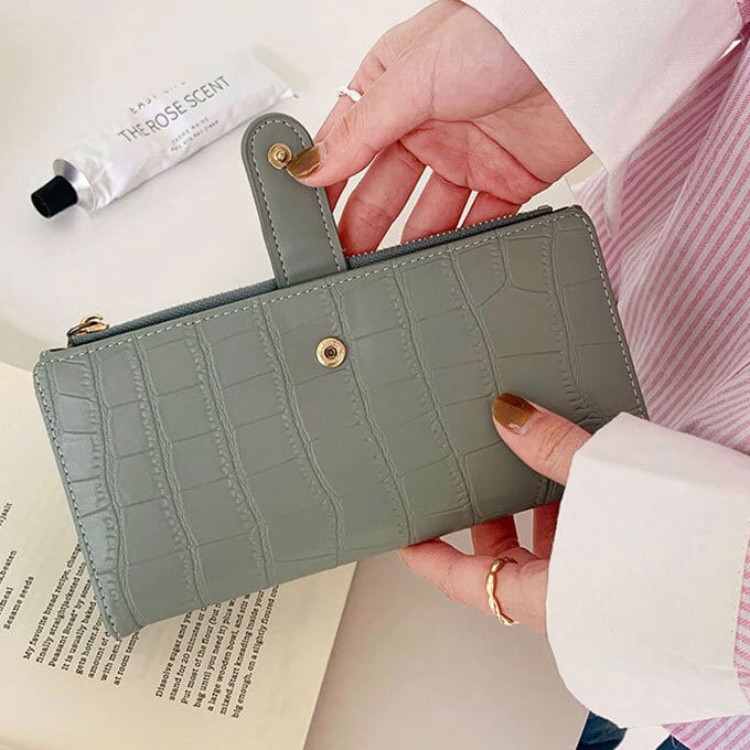 長財布 レディース シンプル 可愛い 大容量 二つ折り財布 小銭入れ付き カード入れ コンパクト PUレザー サイフ 使いやすい ウォレット おしゃれ プレゼント 高級感 クロコ風型押し