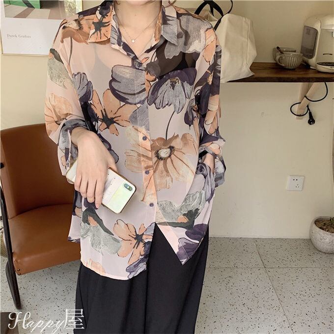 シフォンシャツ レディース 長袖 トップス プリント UVカット 日焼け対策 ゆったり 着痩せ カジュアル 柔らかい 通勤 オフィス エレガント きれいめ 可愛い 上品 春夏 送料無料
