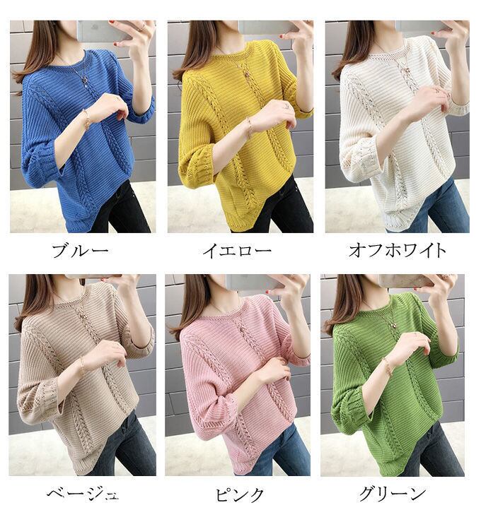 サマーニット レディース 透かし編みニット 透け感 春夏 トップス プルオーバー 七分袖 グルーネック ドルマン袖 ゆったり 大きいサイズ ブラウス 送料無料