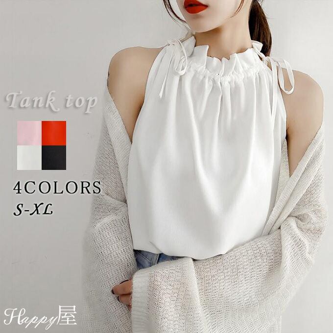 ブラウス レディース シフォン タンクトップ シフォンブラウス 無地トップス ノースリーブ キャミソール ゆったり 痩せ フリル 可愛い 夏 新作 送料無料