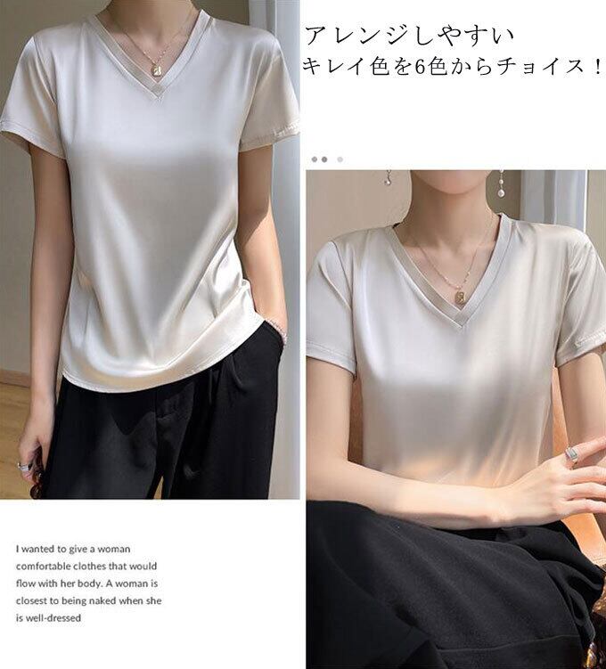 半袖Tシャツ レディース カットソー 半袖 トップス Vネック 可愛い 細身 着痩せ カジュアル 無地 通勤 通学 夏物 春夏 新作 送料無料