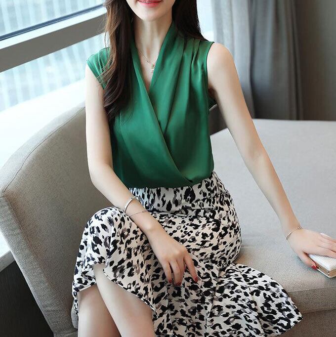シャツ ノースリーブ シルクタッチ 光沢 タンクトップ Vネック 着痩せ ブラウス トップス レディース エレガント 大人 女子 サテン調 通勤 OL きれいめ 夏 新作 送料無料