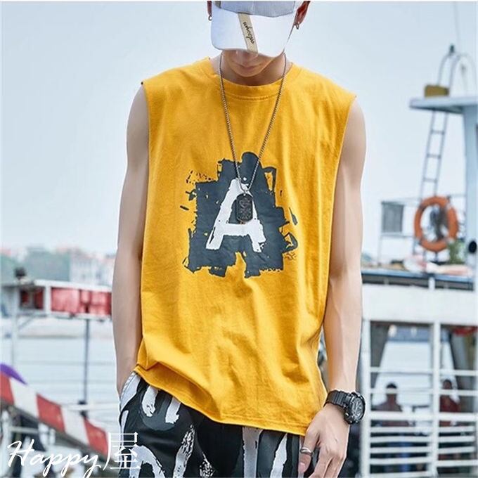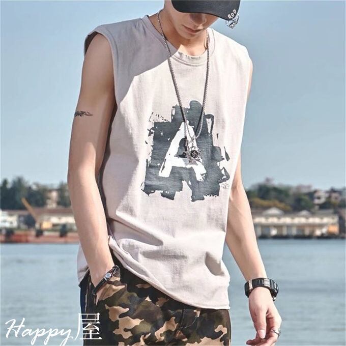 タンクトップ メンズ 袖なし Tシャツ トップス ノースリーブ プリント ゆったり スポーツ ストレッチ ランニング スウェット 韓国風 通学 カジュアル ファッション 夏 送料無料
