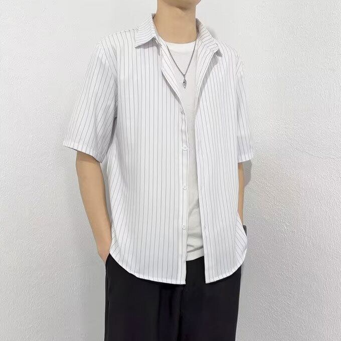 半袖シャツ メンズ ストライプシャツ カジュアルシャツ オシャレ 大きいサイズ ゆったり 通学 通勤 トップス 夏 新作 送料無料