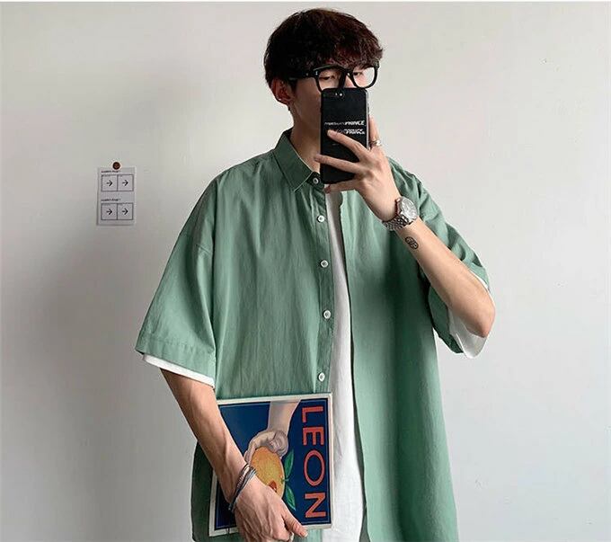 シャツ ワークシャツ メンズ 五分袖 折り襟 前開き シングル ポケット付き 無地 ゆったり 体型カバー カジュアル おしゃれ 通勤 通学 ファッション オシャレ 夏 新作 送料無料
