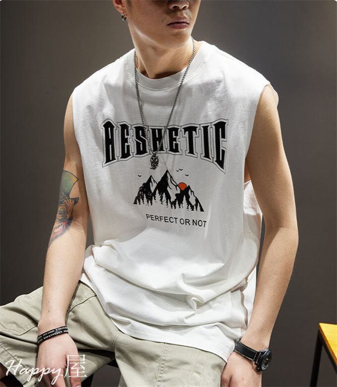 タンクトップ メンズ 肌着 ノースリーブ プリント ゆったり 通気性 スポーツ 大きいサイズ スウェット フィットネス トップス カジュアル 夏物 新作 送料無料