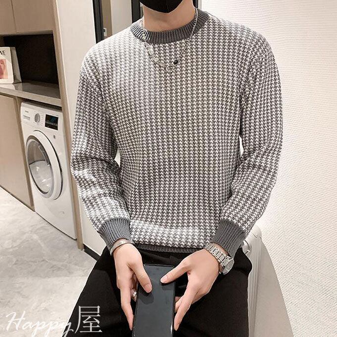 セーター ニット メンズ ニットセーター 千鳥格子柄 長袖 防寒セーター クルーネック メンズセーター 無地 防寒 暖かい あったか 細身 おしゃれ 秋物 冬物 新作 送料無料