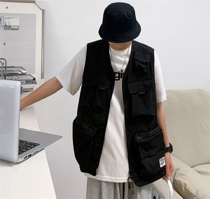ベスト メンズ ワークベスト Vネック ポケット付き ファスナー 作業服 お釣り 登山 ミリタリー アウター ゆったり カジュアル 無地 おしゃれ レトロ 夏新作 送料無料