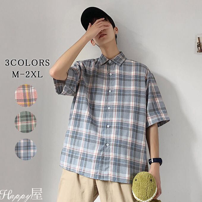 シャツ メンズ 半袖 チェック柄 トップス 折り襟 前開き ゆったり 大きいサイズ 体型カバー カジュアル ファッション トップス 夏 新作 送料無料