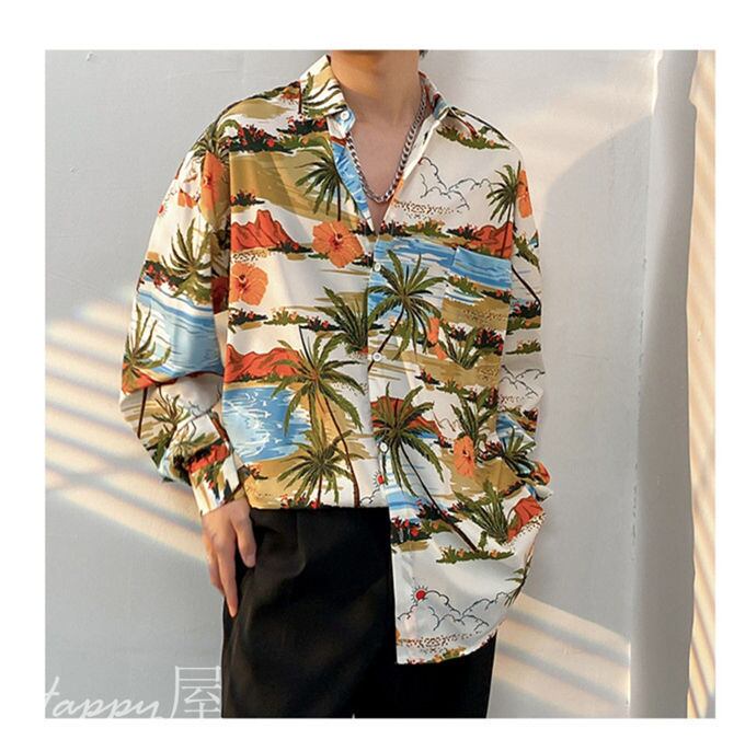 アロハシャツ メンズ 長袖シャツ 花柄シャツ 開襟シャツ 花柄 ハワイ プリント リゾート 旅行 総柄 おしゃれ 大きいサイズ ゆったり トップス 春 メンズファッション 送料無料