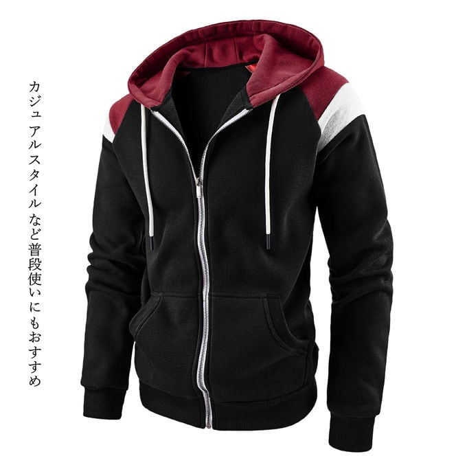パーカー メンズ スウェット ジップアップ 長袖 ストレッチ トップス アウター カラー切り替え スポーツウェア メンズファッション カジュアル 通学 通勤 春 秋 送料無料