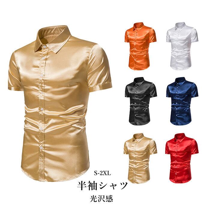 半袖シャツ メンズ 無地 シンプル カジュアルシャツ オシャレ 大きいサイズ ゆったり 光沢感 通学 通勤 トップス 夏 メンズファッション 送料無料