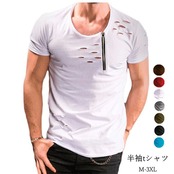 半袖tシャツ メンズ tシャツ ダメージ 無地 トップス スポーツ トレーニング ヒップホップ 大きいサイズ ファッション カジュアル 通勤 通学 夏物 送料無料