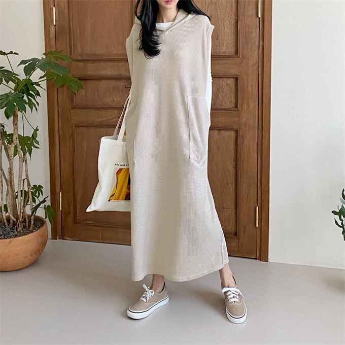 パーカーワンピース レディース ワンピース フード付き パーカー ノースリーブ ミモレ丈ワンピース ポケット付き ベスト ロング丈 ジレ ロング丈ベスト 体型カバー アウター 春秋ワンピース カットソー ストレート レイヤード 柔らかい 結婚式 二次会 袖なし きれいめ シンプル お洒落 オフィスカジュアル 通勤 二次会 フォーマル 30代 40代 50代 20代 60代 おしゃれ 春 秋 オシャレ かわいい 可愛い 韓国ファッション 韓流