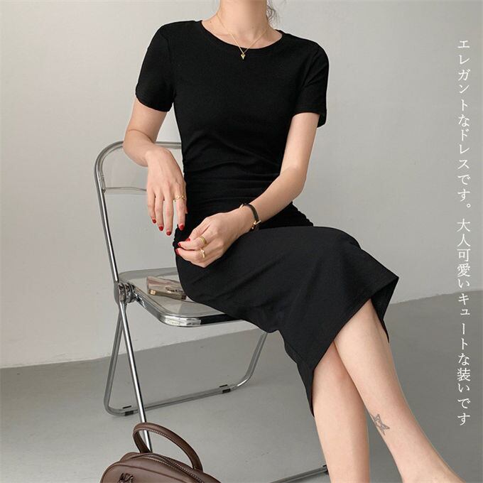 タイトワンピース ワンピース レディース 半袖 ロング丈 可愛い 無地 着痩せ サマーワンピース カジュアル オフィス 細魅せ美人オリジナル ワンピース 大人 上品 通勤OL きれいめ 20代 30代 40代 50代 春夏 送料無料