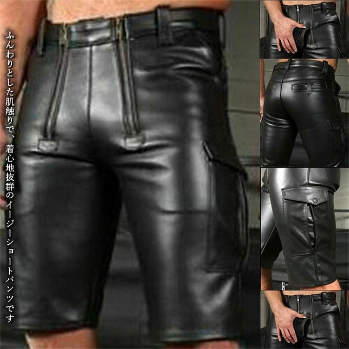 革パンツ ショートパンツ メンズ 短パン レザーパンツ PU レザー カーゴパンツ メンズ ワイドカーゴ レザー 合成皮革 フェイクレザー 合皮 パンツ ボトムス テーパードパンツ ストレッチPU レザー ワイドカーゴパンツ カジュアル ストリート系 韓国 ファッション 20代 30代 40代 50代 誕生日プレゼント ギフト 記念日 ダンス 衣装 ヒップホップ 大人 かっこいい かわいい おしゃれ お洒落 コーデ 大きいサイズ ゆったり 体型カバー ブラック S M L LL 2XL 3XL 4XL 5XL 春夏 ズボン かっこいい