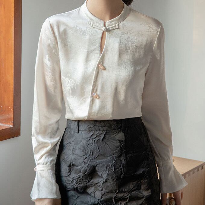 着回し力抜群!きれいめもカジュアルも大人っぽく決まる中国風ブラウス♪