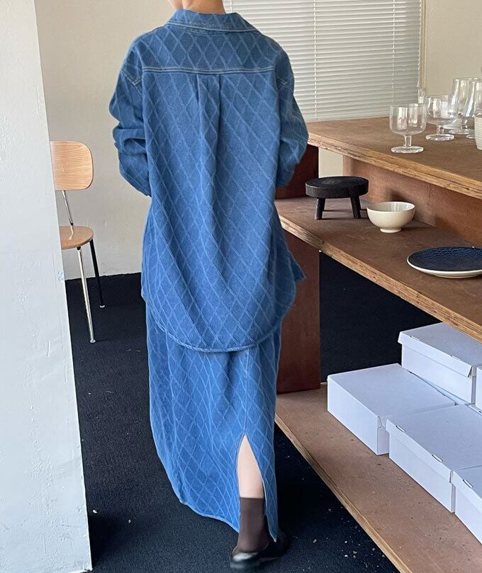 セットアップ レディース 長袖 デニムシャツ ロングシャツブラウス デニムスカート ロングスカート スリット 春秋 カジュアル かっこいい おしゃれ 上品 着痩せ デニムブラウス デニムトップス きれいめ 20代 30代 40代 50代 送料無料