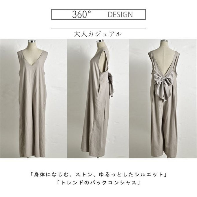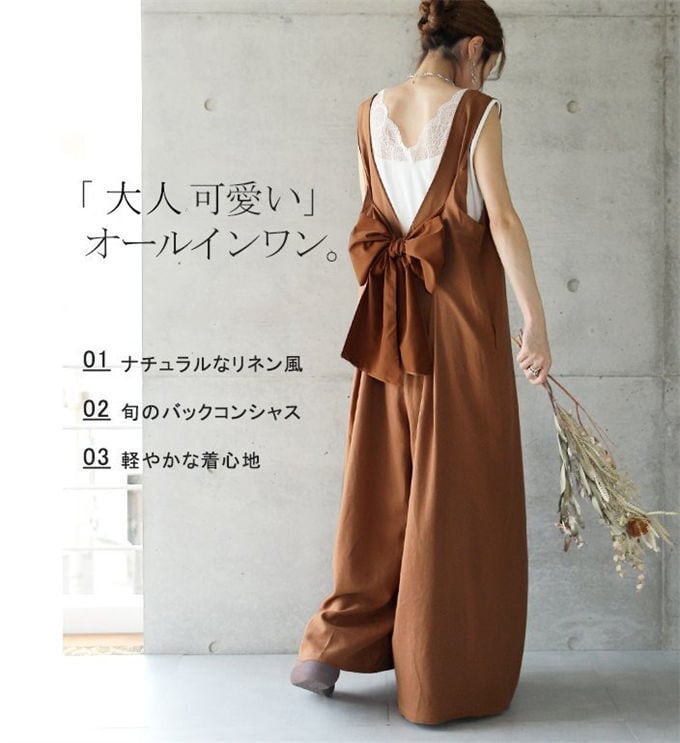 オールインワン レディース サロペット オーバーオール 体型カバー 後ろリボン 大きいサイズ リボン バックリボン ワイドパンツ ワイド ワンピース パンツ つなぎ ズボン オレンジ ブラック 杏色 ブラウン カーキ ベージュ 春 夏 秋 送料無料