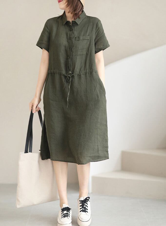 リネンタッチワンピース シャツワンピース シンプル レディース 韓国ファッション ミモレ丈 半袖ワンピース リボン付き リゾートワンピ リラックス ゆったり ワンピース おしゃれ キレイめ 夏 新作 送料無料