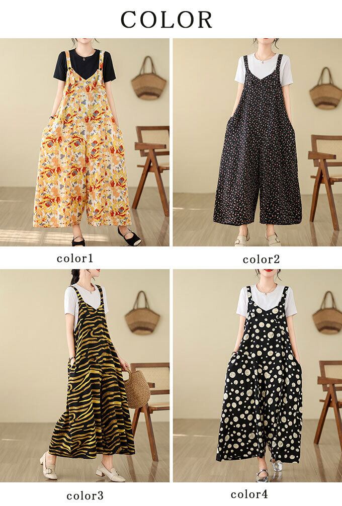 オールインワン レディース サロペット オーバーオール 体型カバー 大きいサイズ ゆったり カジュアル 花柄 水玉 フリント ワイドパンツ ワイド ワンピース パンツ つなぎ ズボン 春 夏 秋 送料無料