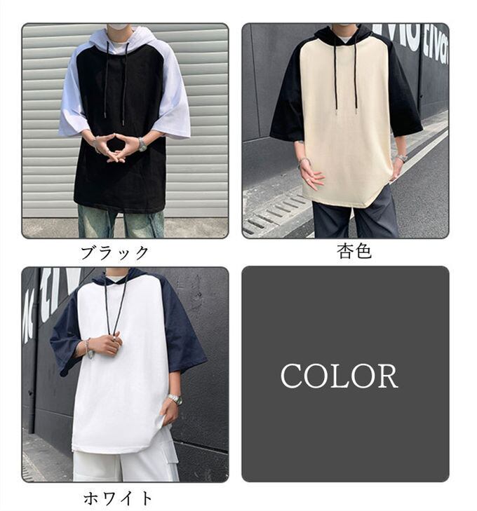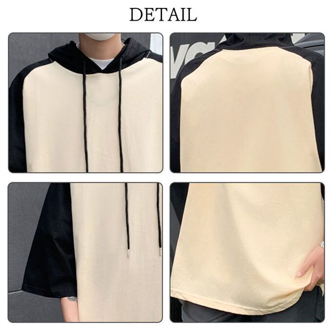 半袖tシャツ メンズ バイカラー切り替え ゆったり ビックシルエット ヒップホップ レイヤード 重ね着 フード付き トップス スポーツ シンプル おしゃれ かっこいい オフィス カジュアル 男性用 ストリート系 春夏 夏服 送料無料