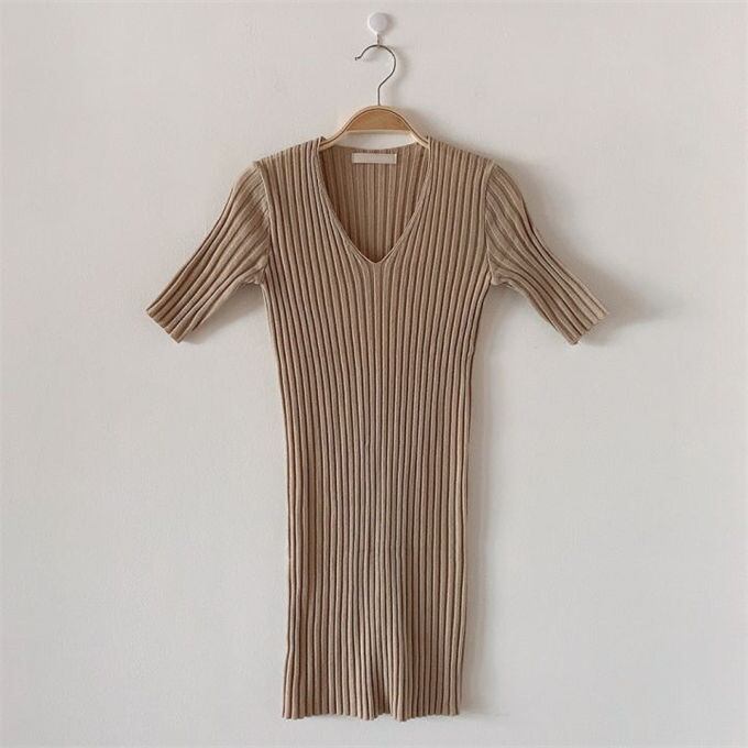 半袖ニットタイトワンピース ニットワンピース レディース リブニット タイトワンピース Vネック ミニ丈 シンプル OL 重ね着 着回し 膝上丈 きれいめ セクシー おしゃれ 上品 通勤 細見え 春 夏 秋 送料無料