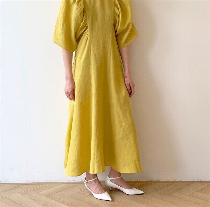 ワンピース レディース 七分袖 フリル 前後両面着用 2way ロングワンピース 無地 シンプル 着回し 大きいサイズ 体型カバー ゆったり 着痩せ おしゃれ キレイめ フェミニン 大人可愛い フォーマル オフィスカジュアル 韓国ファッション 夏 送料無料