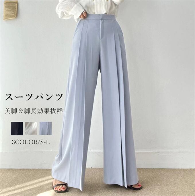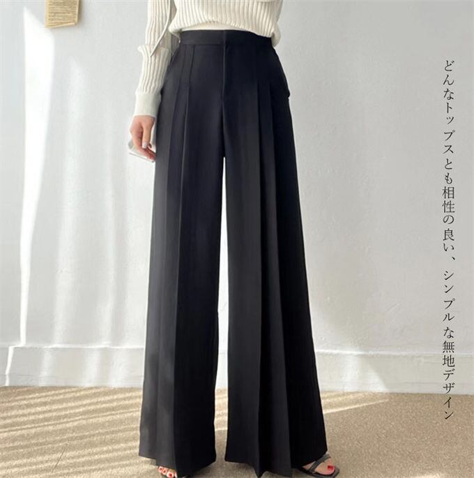 スーツパンツ ロングパンツ レディース ビジネス パンツ ワイドパンツ きれいめ ガウチョパンツ ロングパンツ フリル 体型カバー 着痩せ 韓国ファッション ゆったり ハイウエスト 無地 ボトムス 女性 オフィス 美脚 春 夏 秋 送料無料