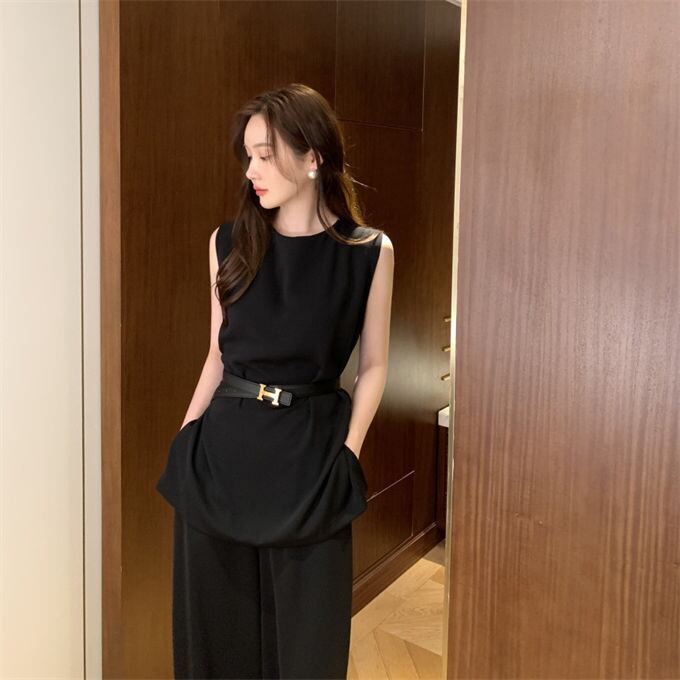 パンツセットアップ レディース 夏 上下セット 2点セット ワイドパンツ タンク シャツ ブラウス 袖なし ノースリーブ カジュアル 通勤 オフィス きれいめ 無地 ロングパンツ 体型カバー 着痩せ シンブル お呼ばれ 着回し フォーマル 高級感